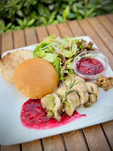 チキンの香味ロール ドラゴンフルーツソースバーガー